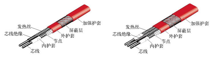電源母線為二根或三根平行絕緣銅導線,在主絕緣層表面上纏繞電熱絲,并將該電熱絲每隔一定距離(即發熱節長)與母線連接,形成