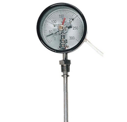 productmiaoshu:產(chǎn)品說明:熱套式雙金屬溫度計可配合各式安裝套管,滿足不同壓力等級要求。可以直接測量過程中的-80-+500℃范圍內(nèi)液體、蒸汽和氣體介質(zhì)以及固體表面測溫。主要技術(shù)參數(shù)標(biāo)度盤公稱直徑:100精度等級:1.